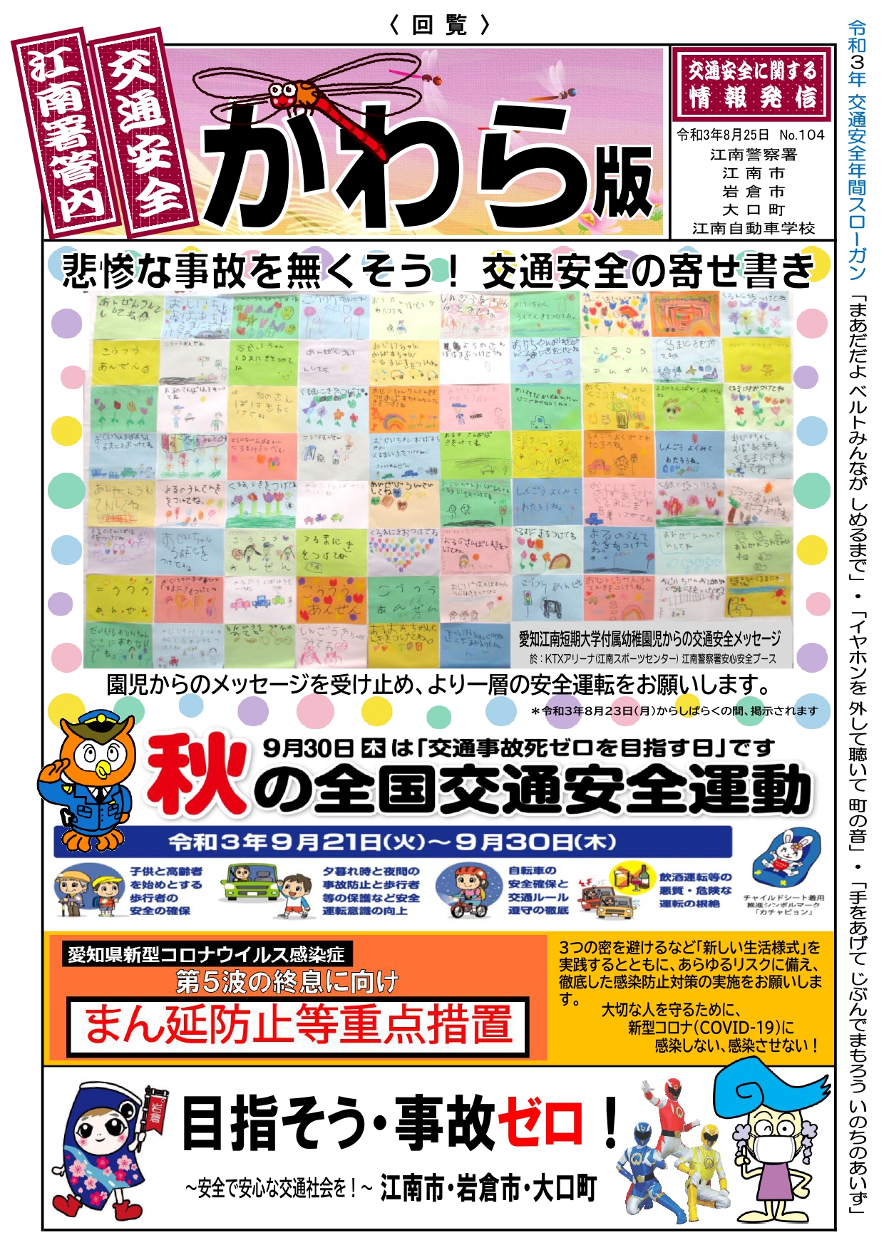 悲惨な事故を無くそう!交通安全の寄せ書き