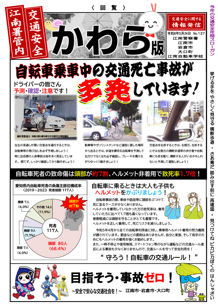 自転車乗車中の交通死亡事故が多発しています!