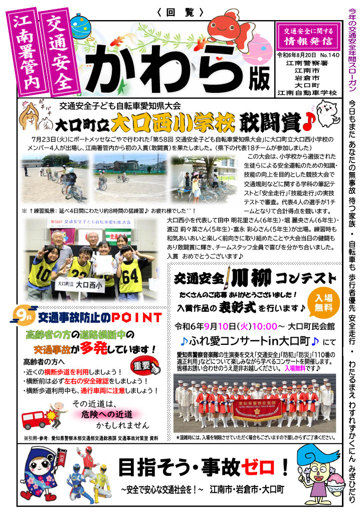 交通安全子ども自転車愛知県大会 大口町立大口西小学校敢闘賞♪