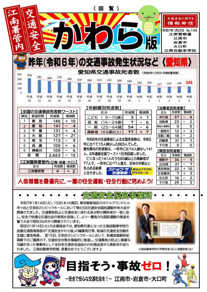 昨年(令和6年)の交通事故発生状況など【愛知県】