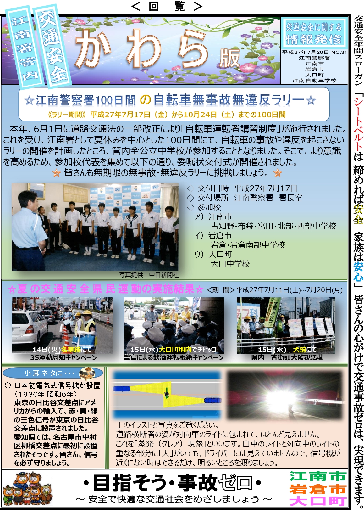 ☆江南警察署100日間の自転車無事故無違反ラリー☆
