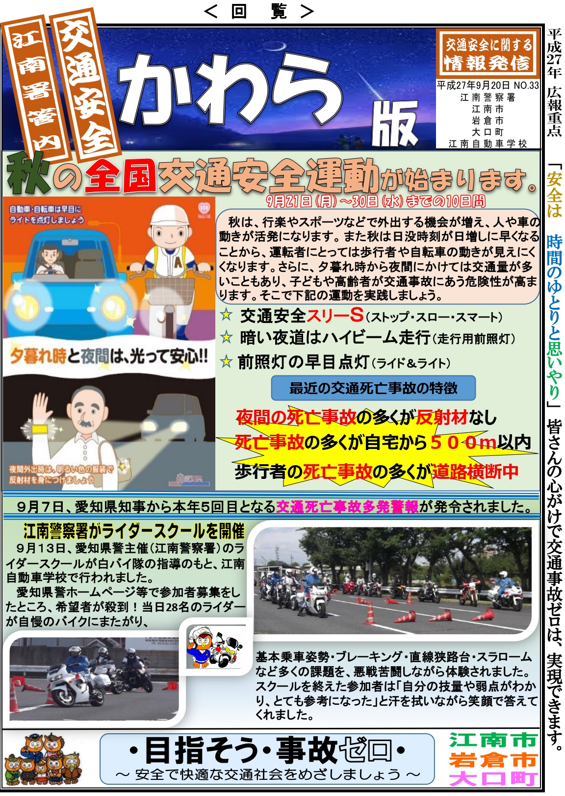 秋の全国交通安全運動が始まります