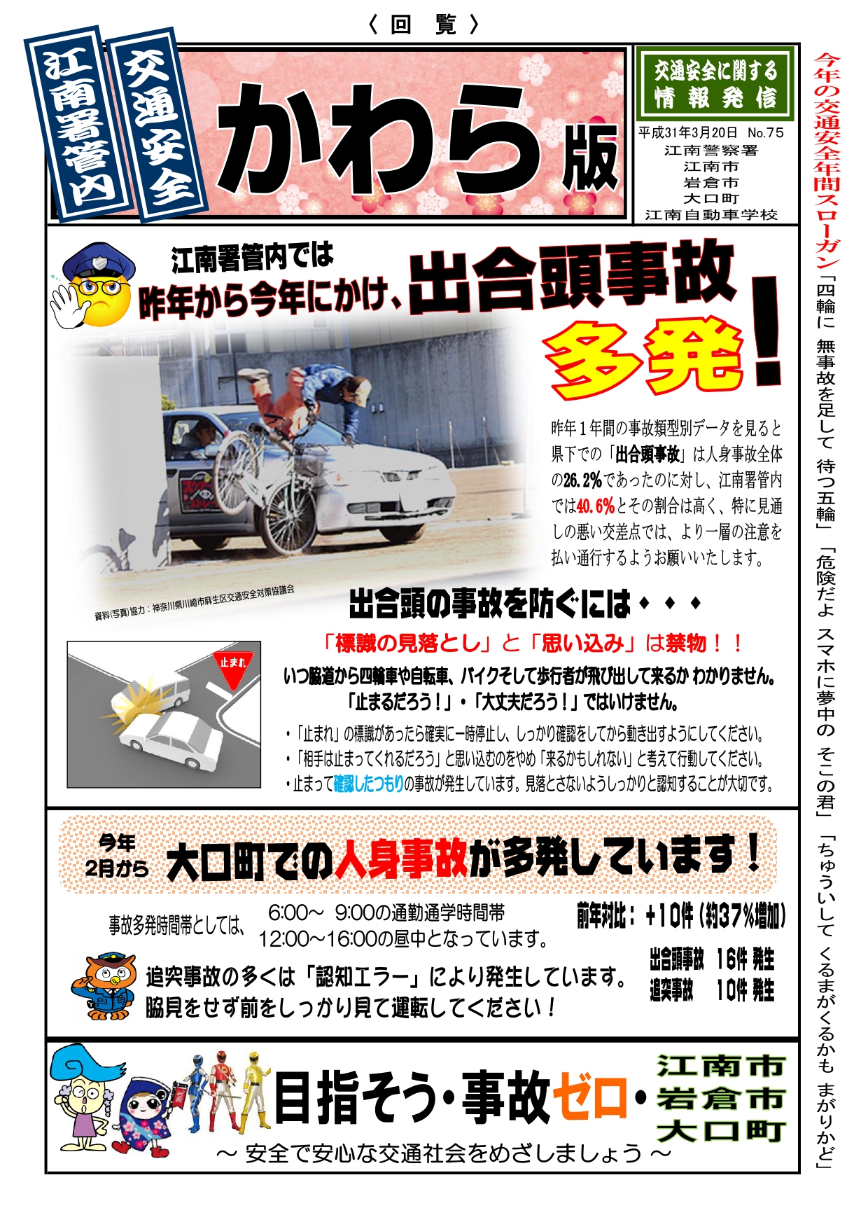 出合頭事故多発!
